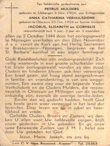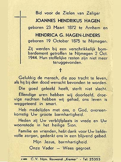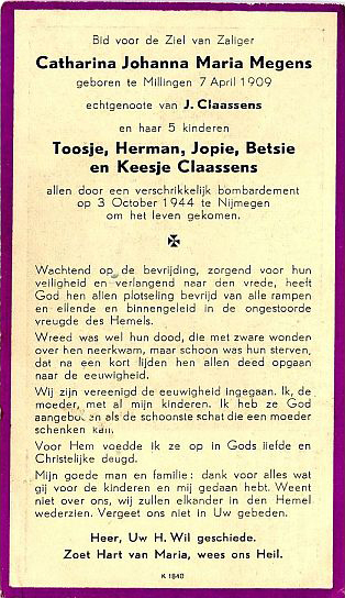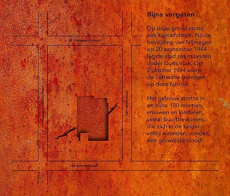 Bronnen: dagrapporten van de LBD (LuchtBeschermingsDienst) okt.'44; De Zeeheld. Wijkblad voor Bottendaal, jrg.18(dec.2013), nr.6, p.8-11: "De bominslag op de Kapokfabriek"; Thijs Gras, Broeder in een brandende stad (2015), pp. 128-129; Huib de Groot, Bommen op Bottendaal. De ramp in de kapokfabriek te Nijmegen van 2 oktober 1944 op Noviomagus.