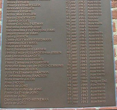 Op 17 november 1942 begon de grote razzia in Nijmegen die tot doel had alle Joden op te pakken. 196 mensen werden uit hun huis gehaald door Nijmeegse politieagenten en naar het gebouw van de HBS aan de Kronenburgersingel overgebracht. De volgende dag vond het transport per trein naar het station Hooghalen plaats. Vanaf dat station moesten ze lopend naar het doorgangskamp Westerbork.