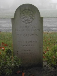 De soldaat Theodorus (Theo of Dorus) Gremmen was getrouwd met Wilhelmina Maria (Mien) van Eldik. Zij kregen 5 kinderen, Jo, Nico, Theo, Gerda en Rinus. Bij de mobilisatie van 1939 werd Theo voor de militaire dienst opgeroepen. Zonder thuis afscheid te kunnen nemen werd hij met met enkele andere bekenden naar Rotterdam gestuurd. Daar moesten ze tegen de binnenvallende Duitsers vechten. Op 12 mei 1940 raakte Theo ernstig gewond en moest twee benen missen. Zijn kameraad wilde hem niet zo achterlaten en heeft Theo verbonden en naar een Rode Kruisboot gedragen in de veronderstelling dat Theo daar veilig zou zijn. Kort erop kreeg de boot een voltreffer en zonk. Langs het Boerengat lagen stellingen waarin zijn Compagnie zat. Hij werd door de politie te water op 23 mei 1940 in de Maas dood gevonden.
