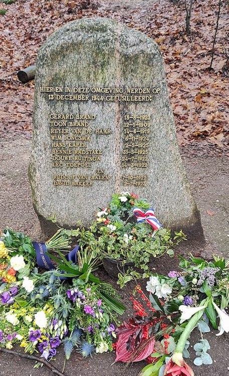 gedenksteen op de plaats van de executie van de 10 mannen, bij de Emmapiramide, Rozendaal
