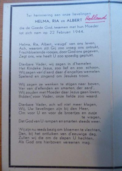 Lit.: J.Rosendaal, Nijmegen '44, Nijmegen 2009, p. 206-207 met foto van de feniksaquarel; www.noviomagus.nl bidprentje(B199) met foto van moeder en de kinderen, en uitvoerige toelichting op de redding van de jongste zoon