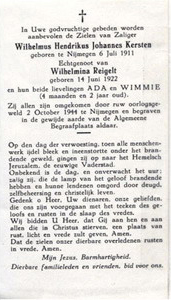 Bron: OSAN 19-30882.; PK; De Gelderlander 24 oktober 1944; collectie Bart Janssen onder W.H.J.Kersten met bidprentje( naam foutief Reigelt) en foto's . Bart Janssen, Het verdriet van Nijmegen 1940-1945 blz 697 ev genalogieonline.nl