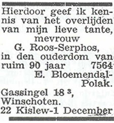 Overlijdensbericht G. Roos-Serphos