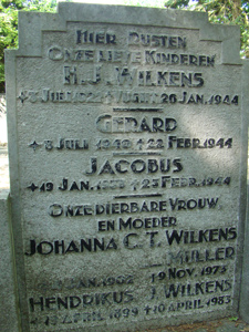 Koosje en zijn broer Gerard, kinderen van Hendrikus J. Wilkens en Johanna C.Th. Muller, liepen op 22 februari 1944 van hun huis in de Ridderstraat naar school in de Jacob Canisstraat. Op de hoek van de Burchtstraat werden zij overvallen door het bombardement, en daarbij werd Gerard dodelijk getroffen. Koosje overleed een dag later aan zijn verwondingen. Dit  gezin van tien kinderen had enkele weken voor het bombardement de oudste zoon verloren; hij kwam om in het Concentratiekamp Vught.