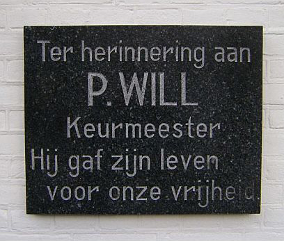 In 1954 is zijn stoffelijk overschot op de Kriegsgräberstätte te Sandbostel herbegraven. Maar pas in 1965 konden zijn stoffelijke resten worden geïdentificeerd. Het stoffelijk overschot lag in een massagraf met duizenden doden bij Sandbostel. en is vervolgens naar het Ereveld Loenen overgebracht. Al veel eerder, namelijk op 1 april 1946, is in het gemeentelijke slachthuis een gevelsteen geplaatst ter gedachtenis aan de collega, Peter Will, die al vroeg tegen het nationaal-socialisme in verzet kwam en dat met zijn leven moest bekopen. Na de sloop van het slachthuis zal die plaquette een plaats krijgen in de nieuwbouw op het slachthuisterrein.